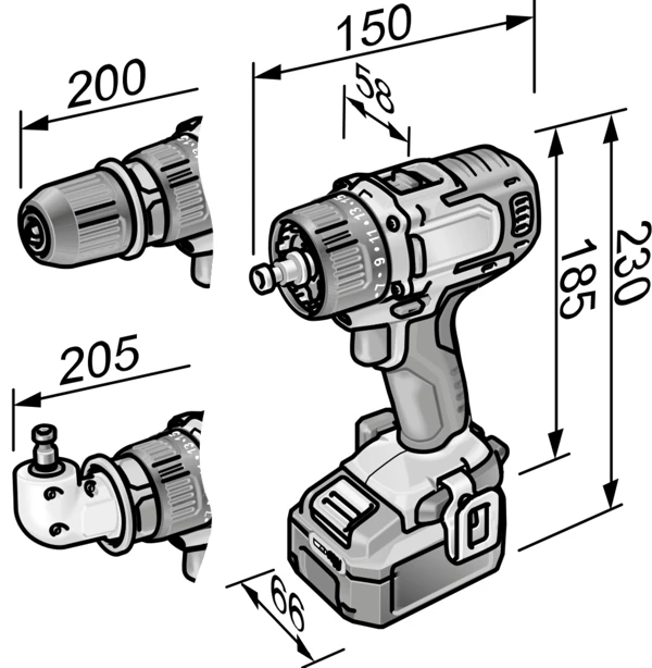 • Bohrfutter-Spannweite 1,5 – 13 mm