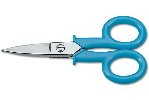 Gedore 8096-140 Kleine Universalschere 140 mm mit Abisoliernute Vernickelt, blaue Griffschutzumhüllung Maße: Länge 140 mm
