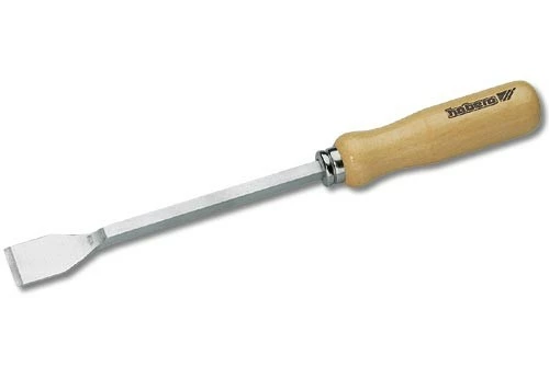 Schaber mit Holzgriff und gebördelter Zwinge. Spezialstahl, schwarz lackiert. Arbeitsflächen geschliffen. Maße: Länge (L, L1): 270 mm, Klingenlänge (L2): 150 mm