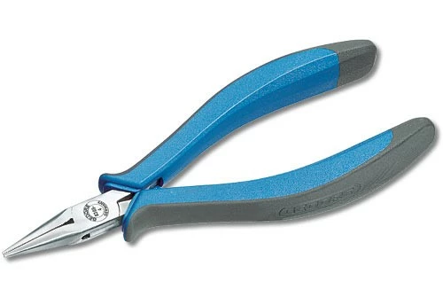 Elektronik-Spitzzange halbrunde Backen, mit Hieb. Extra dünne Spitzen 1×1,5 mm, Maße: L 135 x Backenlänge 23 mm