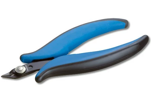 Miniatur Elektronik-Seitenschneider Extra spitze, schmale Kopfform, Schneiden 21° gewinkelt, induktiv nachgehärtet, ohne Fase Schneidwerte: Kupferdraht: max. 0,8 mm / AWG 20 Länge 138 mm Schneidenlänge 8 mm