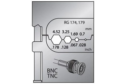 Modul-Einsatz für Koax-Verbinder Leiterquerschnitt / -durchmesser (mm²): 4,52 3,25 1,69 0,7 / 0,178 0,128 0,067 0,028