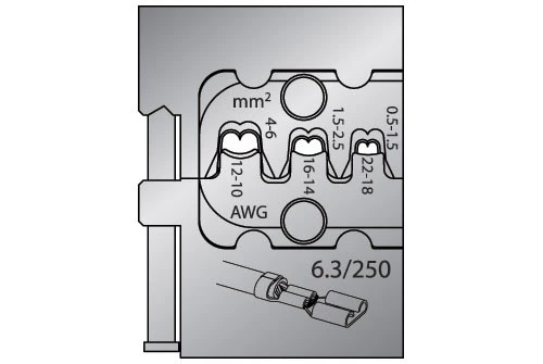 Moduleinsatz 8140-11 für Flachsteckhülsen, Leiterquerschnitt / -durchmesser (mm² / AWG) AWG) 0,5-6 / 22-10