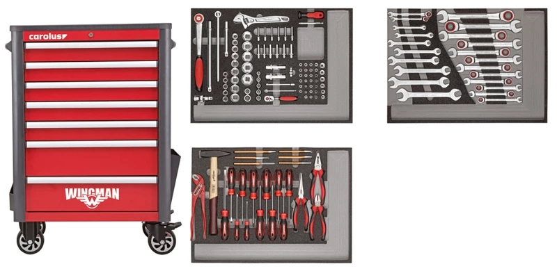 GEDORE red R22071004 Werkstattwagen WINGMAN mit 7 Schubladen + Werkzeugsatz in Schaustoffmodulen 129-tlg
