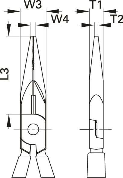 • Flach-runde, lange Backen, Greifflächen gerade, gezahnt