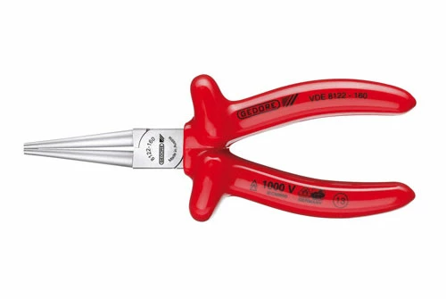 Gedore VDE-Rundzange mit Tauchisolierung VDE 8122-160 mit langen Backen, Greifflächen gezahnt, Schenkel mit VDE-Tauchisolierung