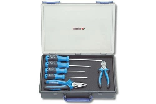 Werkzeugsatz 6-teilig im stabilen Kunststoffkoffer, 3K-Schraubendreher Schlitz, 3K-Schraubendreher Kreuzschlitz, Kraft-Kombinationszange, Kraft-Seitenschneider