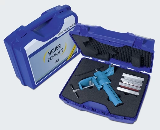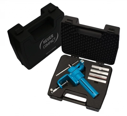 Das innovative HEUER Compact-Koffer-set ist das ideale Werkzeug für alle, die mobil arbeiten. Viele Arbeiten finden nicht an der Werkbank statt, sondern auf der Baustelle, im Garten oder auch mal bei einem Freund. Genau dafür hat das HEUER Compact-Kofferset entwickelt. Der neue HEUER Compact mit Schnellverstellung HEUER Quicklaunch im praktischen Koffer-Set. Völlig neu, absolut innovativ: Der HEUER Compact mit Schnellverstellung HEUER Quicklaunch. Stufenlos einstellbar bis zu 130 mm Spannweite. Die montierte Tischklammer macht den HEUER Compact extrem mobil. Montierbar an bis zu 60 mm starken Arbeitsplatten.