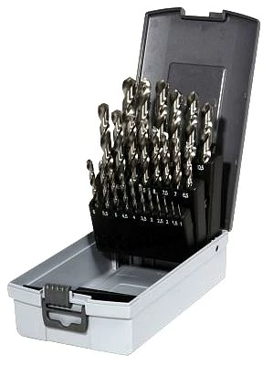 HSS-G Metallbohrer-Satz 1,0 – 10 mm, 19 tlg. DIN 338 Typ RN, geschliffen, 1,0 – 10 mm / 0,5 mm steigend für Bohrungen in legiert und unlegiert Stählen, Bleche, Stahlrohre, Stahlprofile, Vollmetall u.s. w.