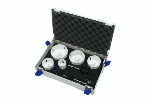 Wilpu TKE Lochsägen-Set Elektro im MINI-SYSTAINER Koffer, Lochsäge 22 mm – 10 ZpZ; 35, 51, 57, 68, 76 mm – 4/6 ZpZ, Sägenaufnahme ZE 1 (14-30 mm), ZE 5 (32-210 mm), Schleuderfeder ZES